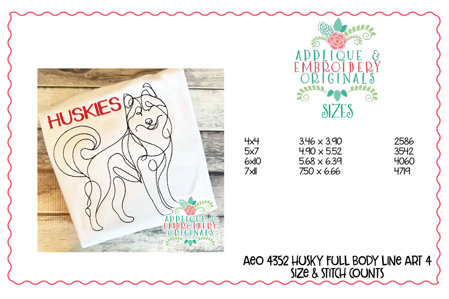 4352 Husky Full Body Line Art Embroidery Design