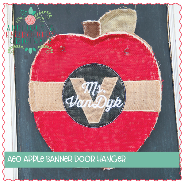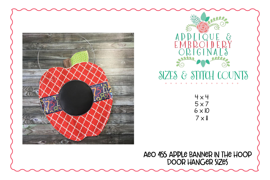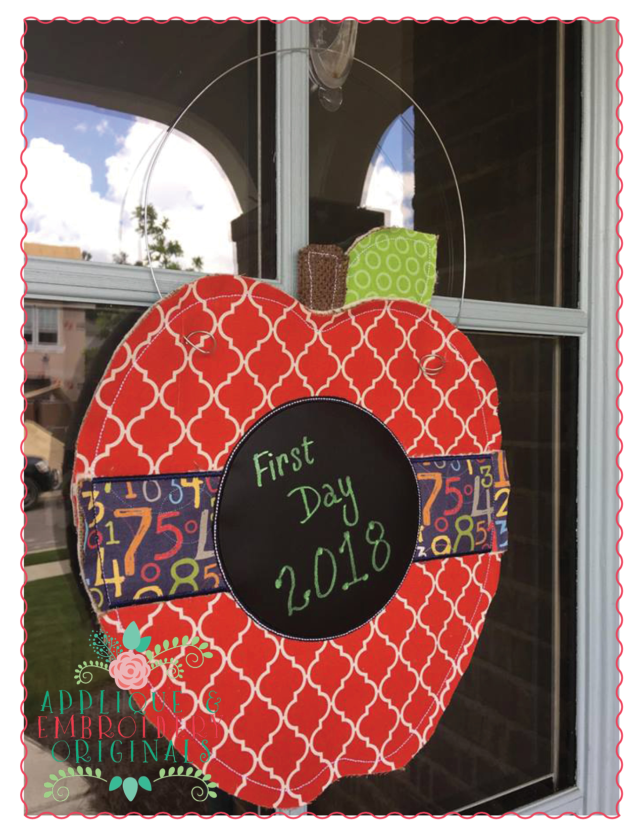 455 Back to School Apple Banner Door Hanger In-The-Hoop Applique Design