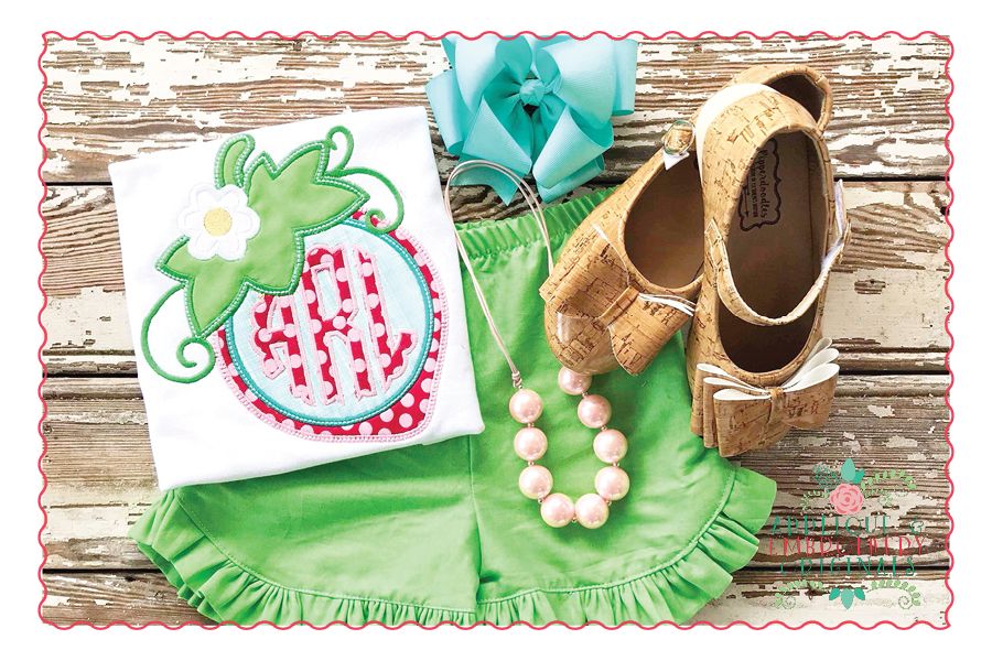 463 Strawberry Monogram Frame Applique Design