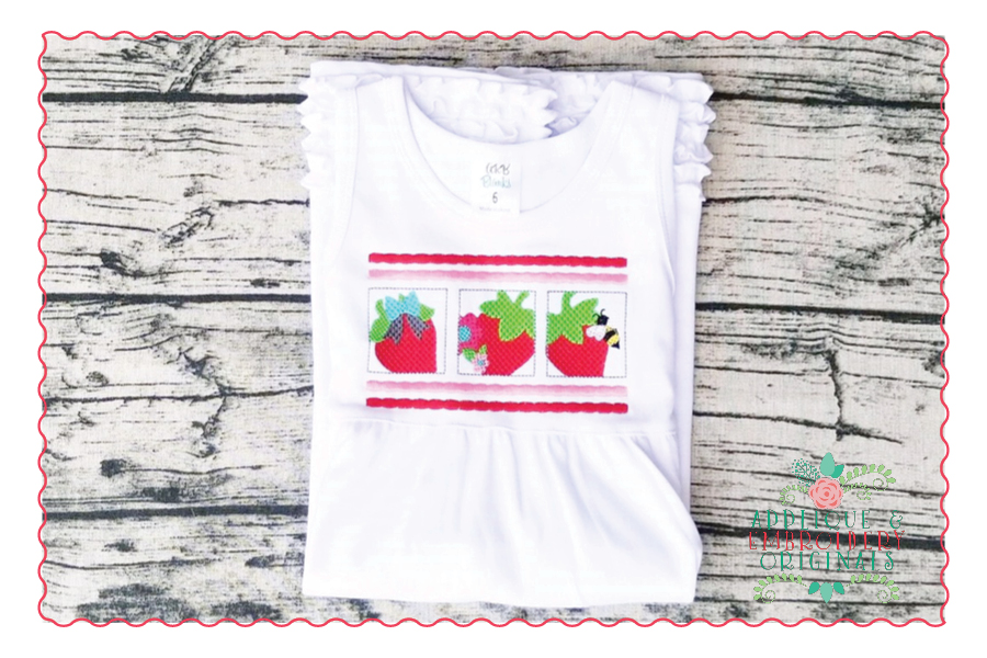 468 Strawberry Trio Faux Smocked Embroidery Design