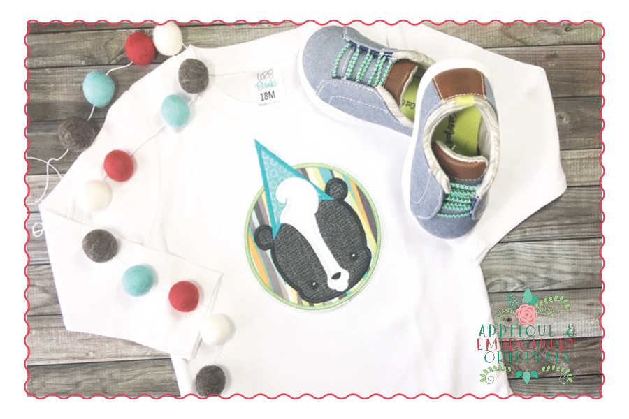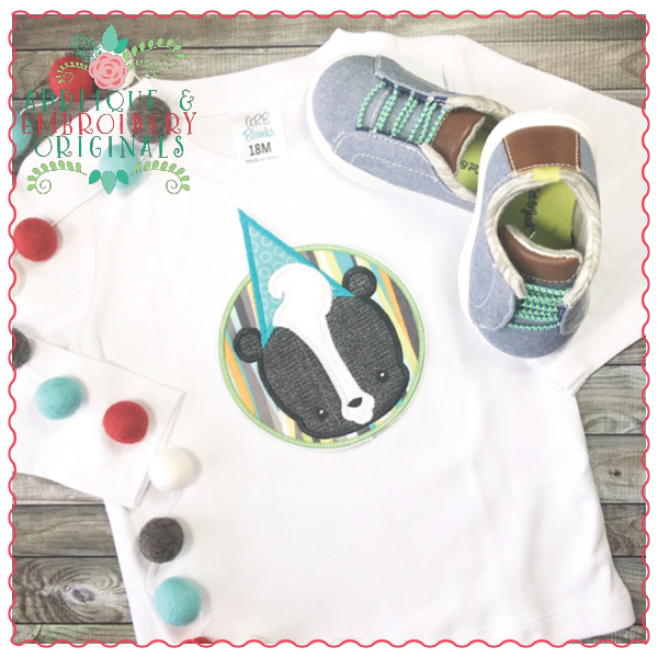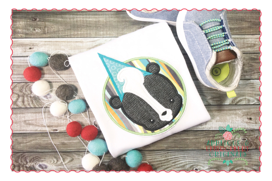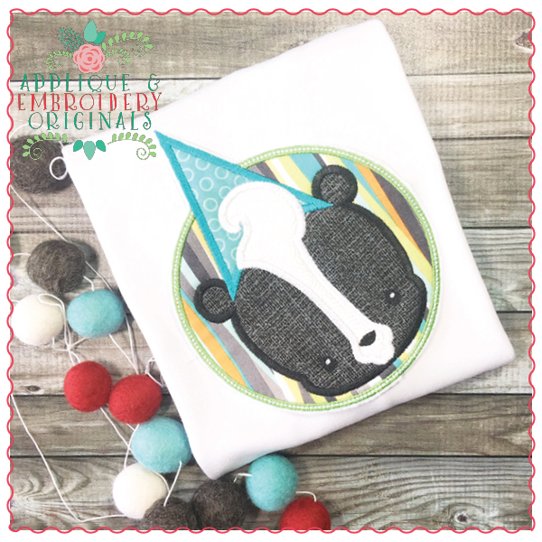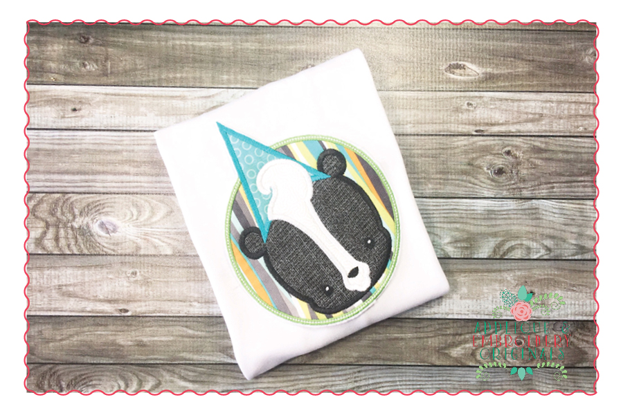 508 Birthday Skunk Hat Circle Patch Applique Design