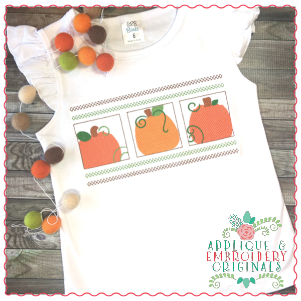 569 Pumpkin Block Trio Smocked Embroidery Design