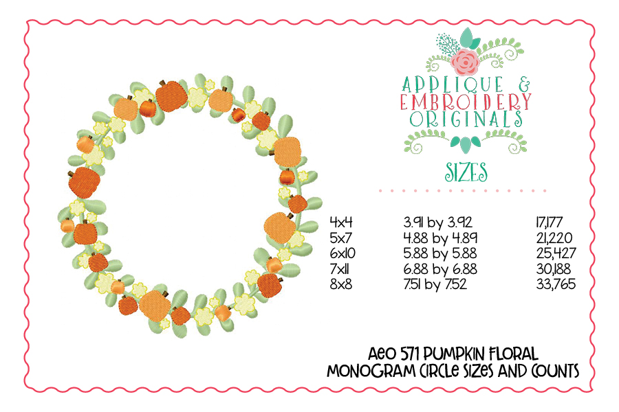 571 Pumpkin Floral Monogram Circle Embroidery Design – Applique And Embroidery Originals