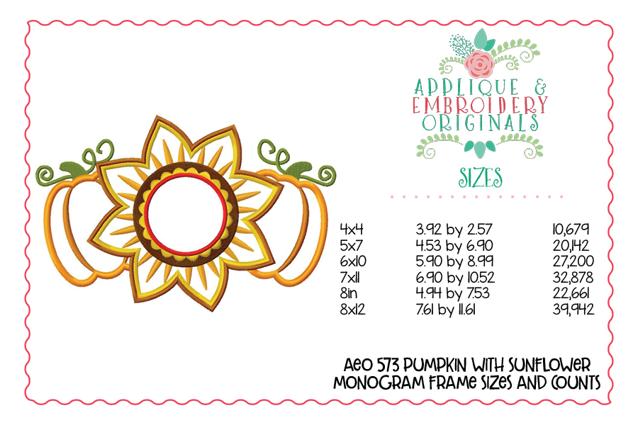 573 Pumpkins with Sunflower Monogram Frame Applique Design