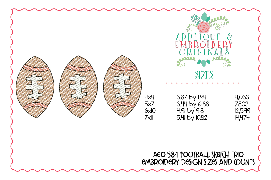 584 Football Trio Sketch Embroidery Design