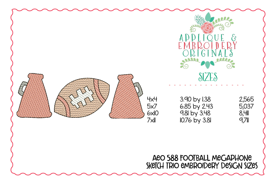 588 Football Megaphone Trio Sketch Embroidery Design