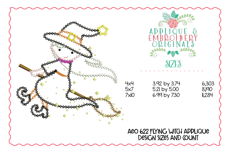 622 Flying Witch on Broom Applique Design