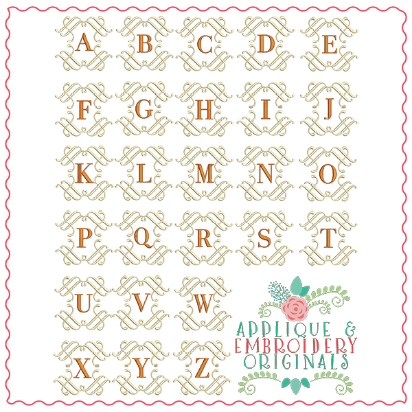 665 Havenbrook Framed Monogram Script Embroidery Font