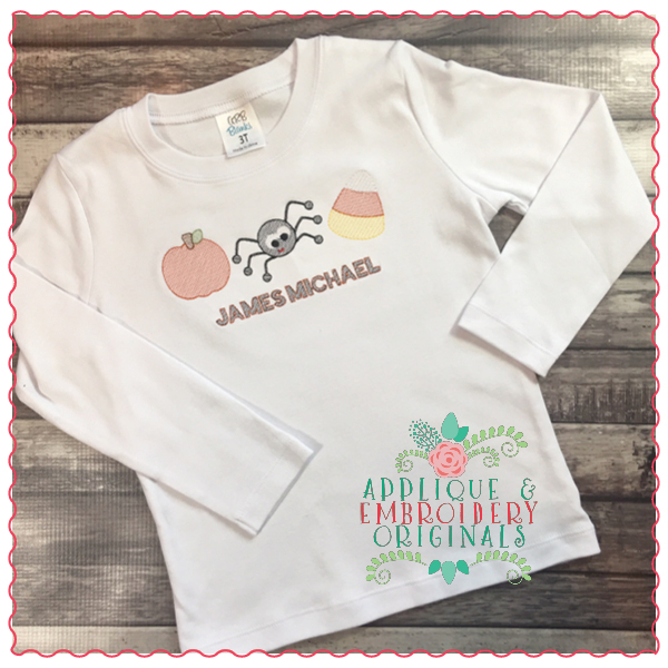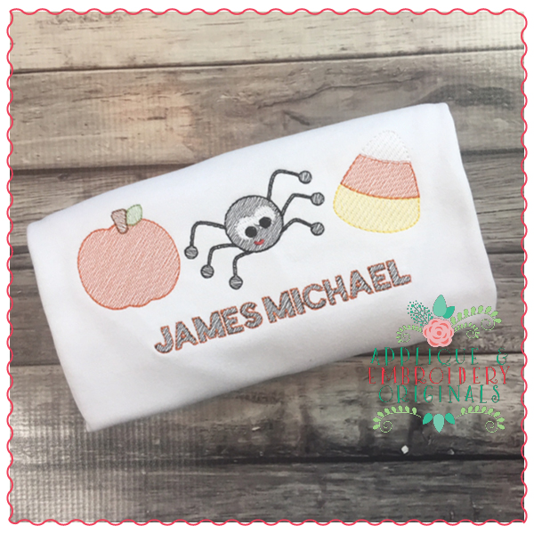690 Pumpkin Spider Candy Corn Trio Sketch Embroidery Design