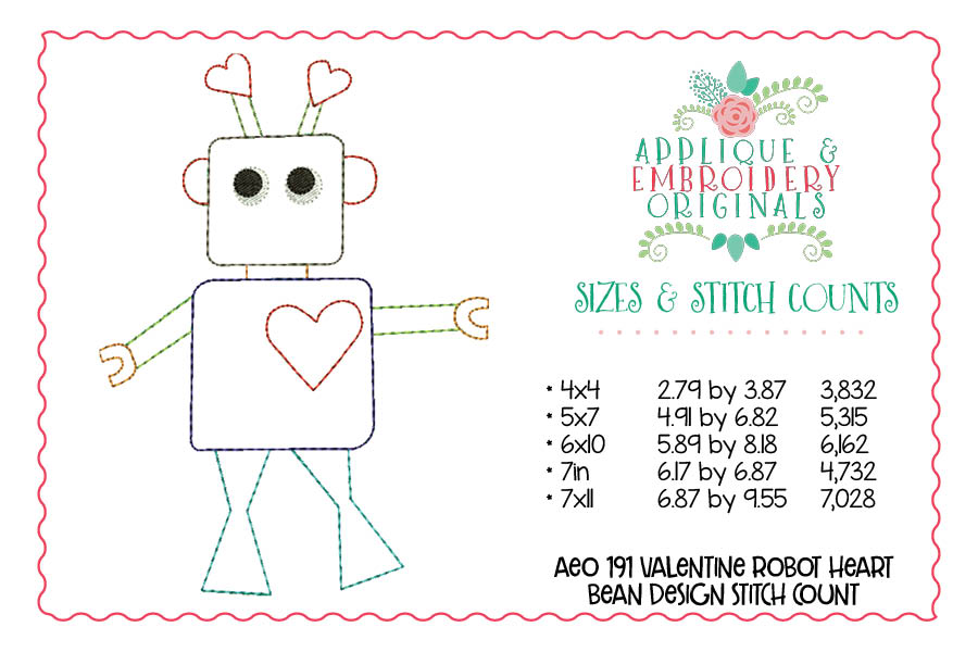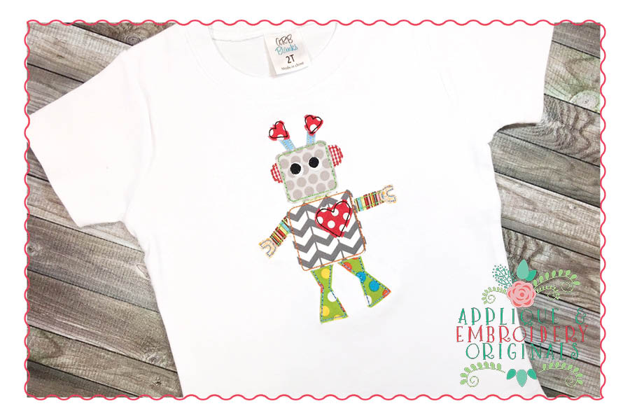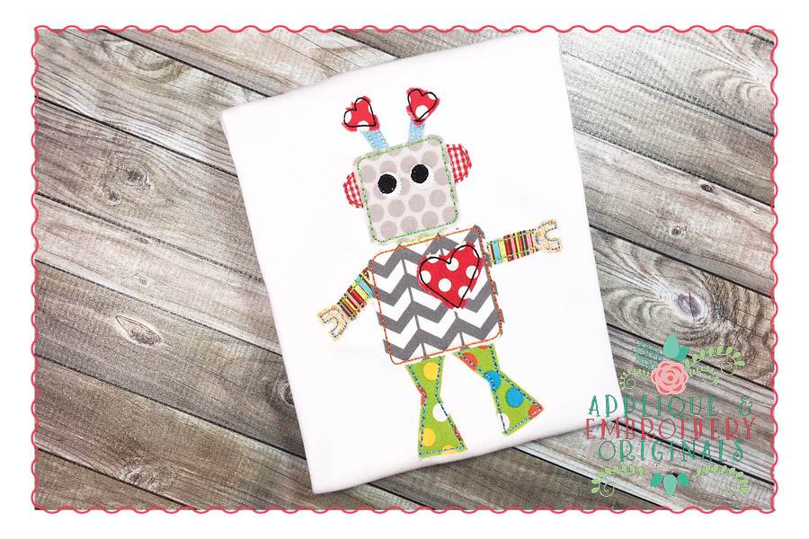 191 Robot with Heart Bean Stitch Applique Design