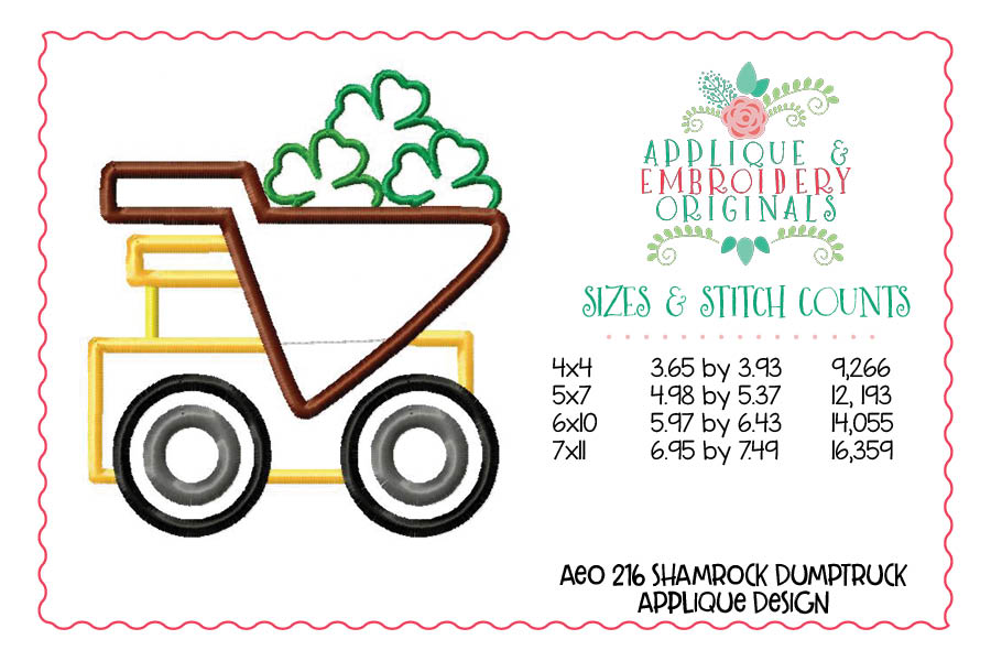 216 Dump Truck Shamrock Applique Design