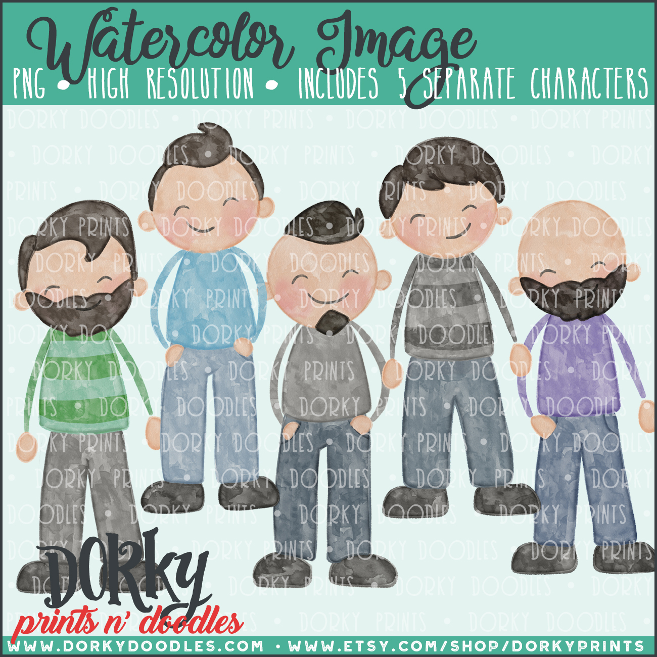 Family Characters Watercolor Printable Art – Dark Hair Men