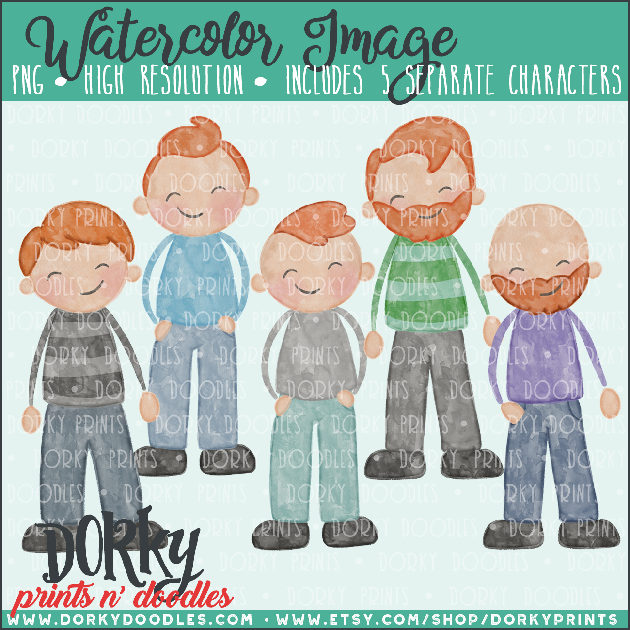 Family Characters Watercolor Printable Art – Red Hair Men